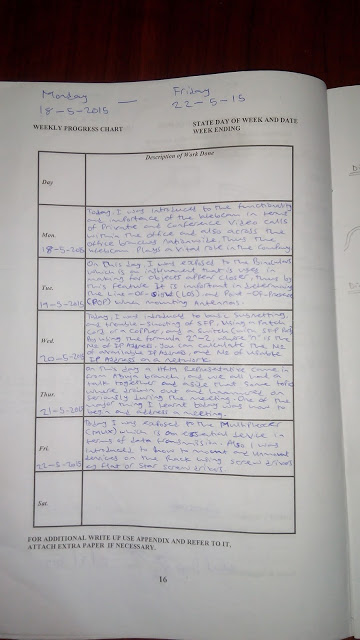 This is the main body of the Log book, where the student record the daily experiences gained as he or she carries out the SIWES programme. This is done by writing a brief summary of what you did on that particular day in the space provided, and also attach the date of that day as well.